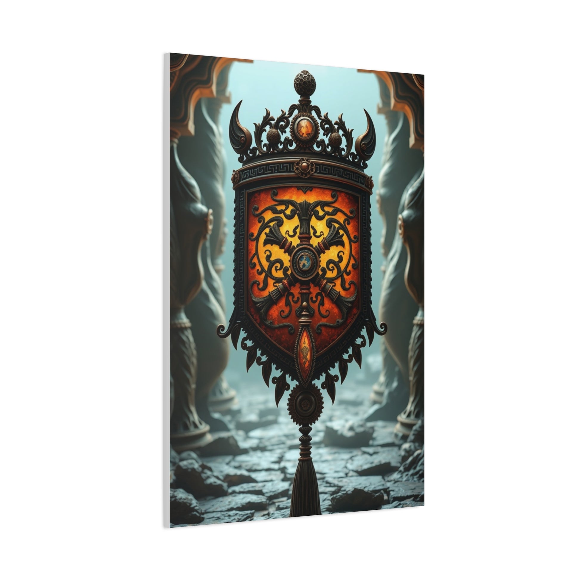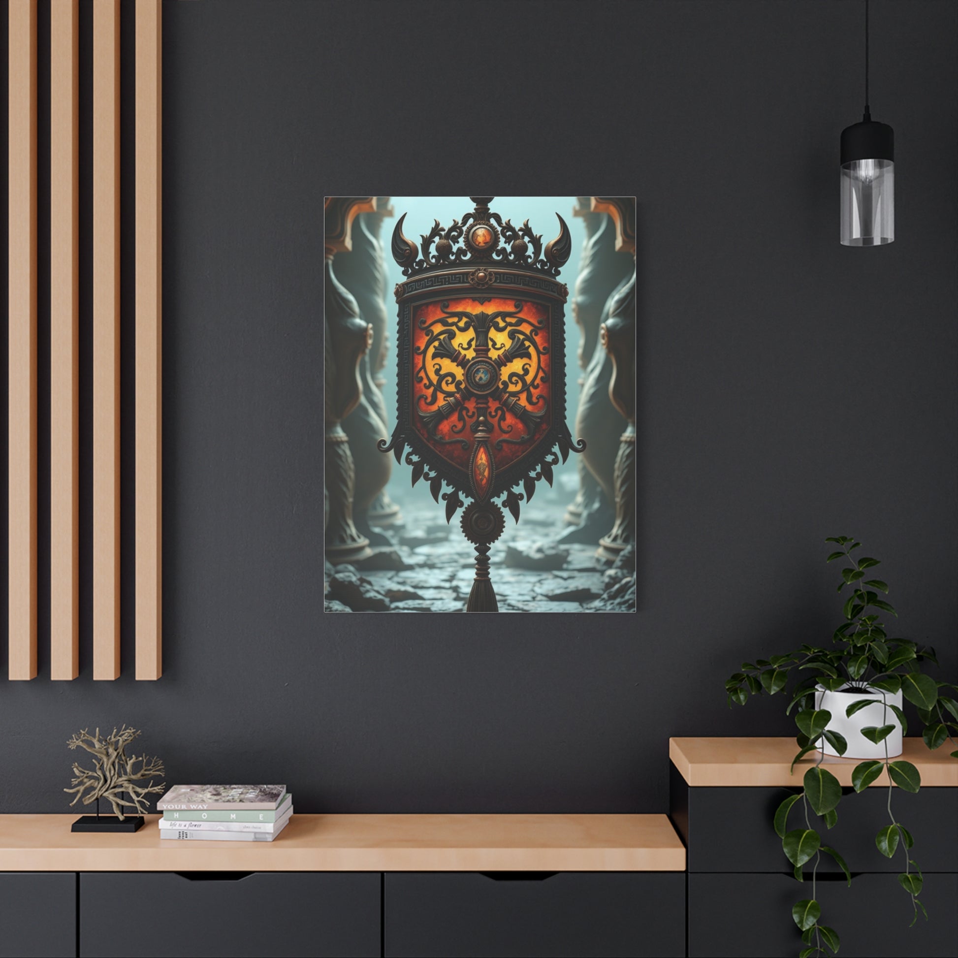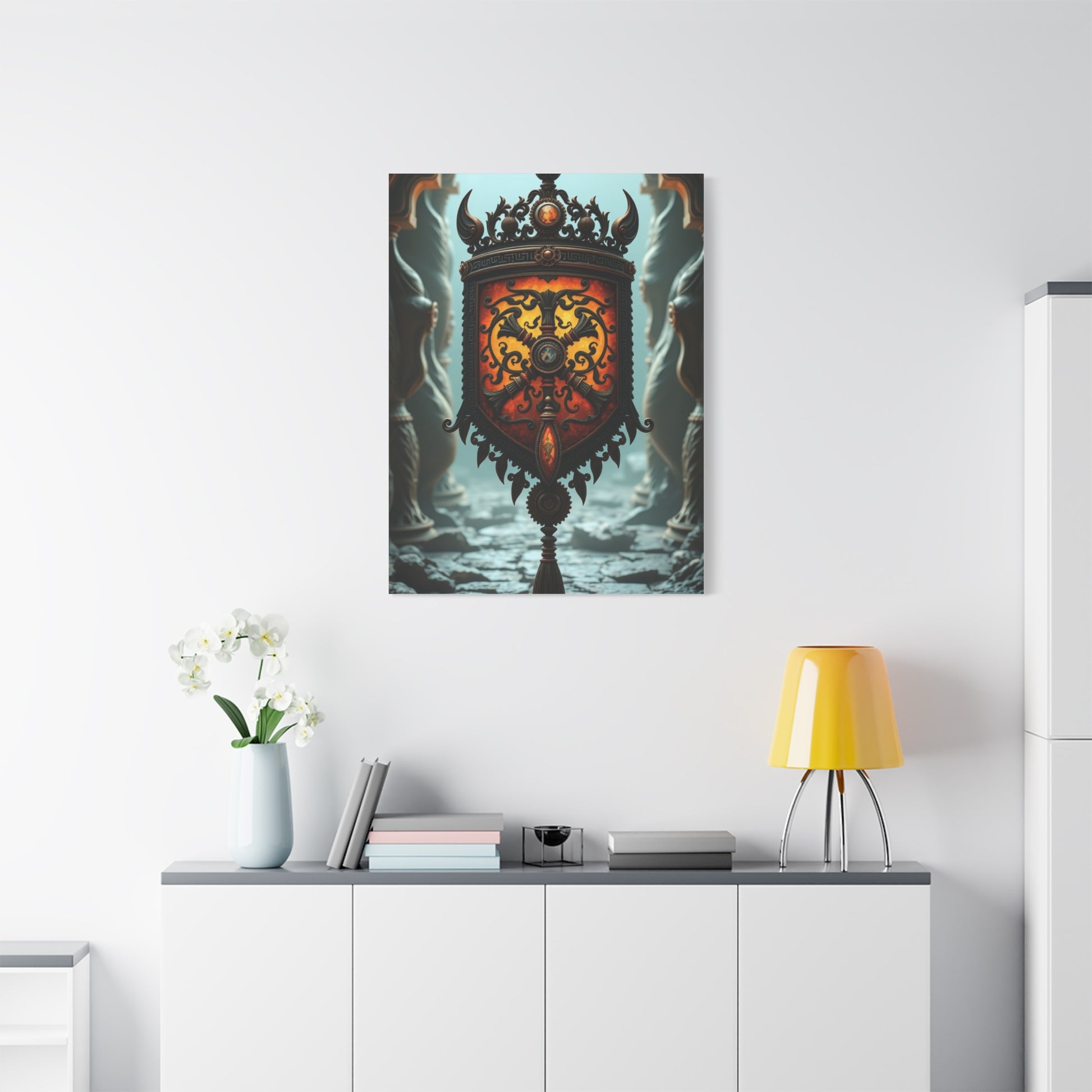 The symbolic content of focal point artwork influences room atmosphere more significantly than pieces in supporting roles. Ancient-inspired imagery depicting themes of strength, wisdom, protection, or prosperity can psychologically influence how occupants feel within the space. Selecting focal point artwork with symbolic resonance aligned with the room's purpose creates subtle but meaningful connections between aesthetic choices and functional intentions.