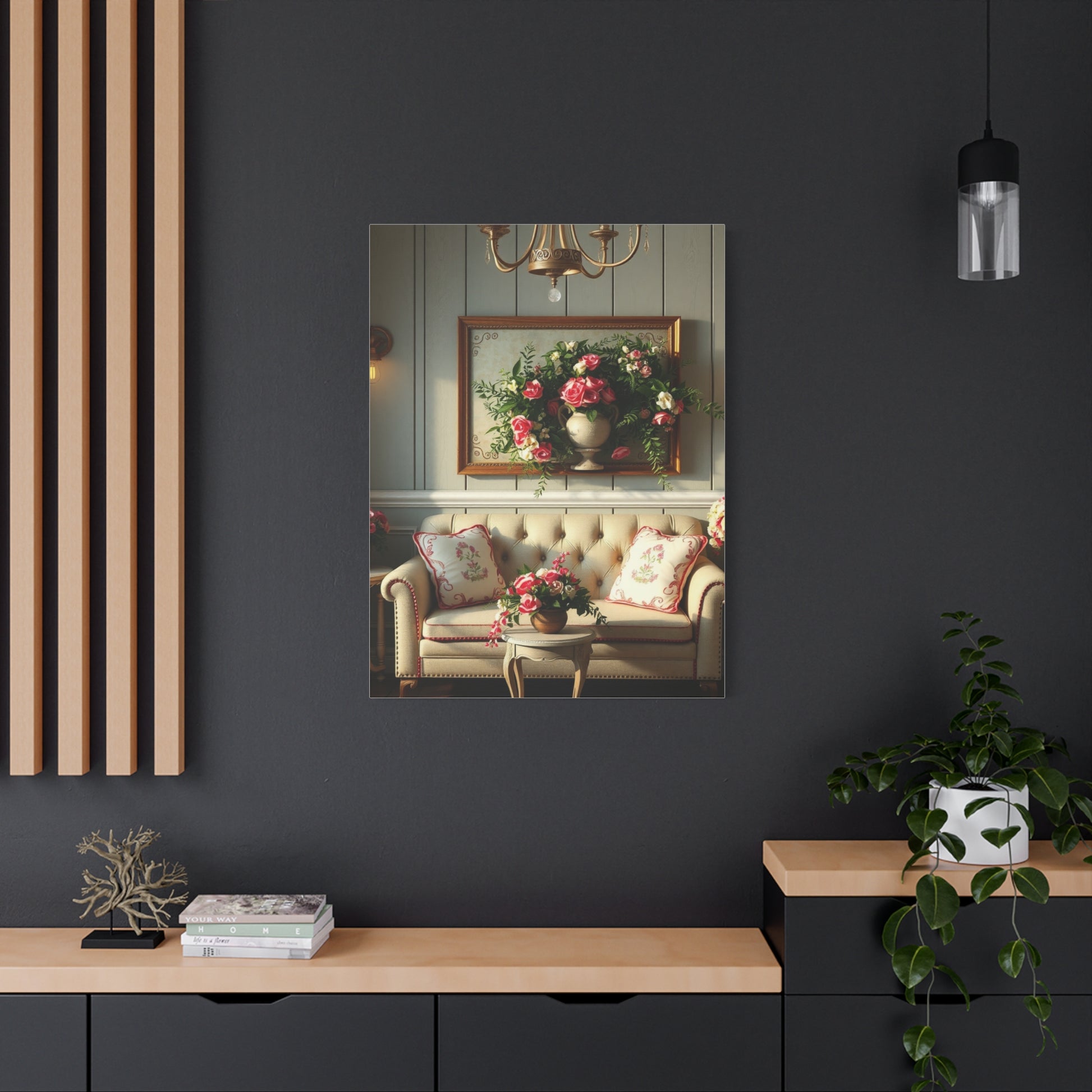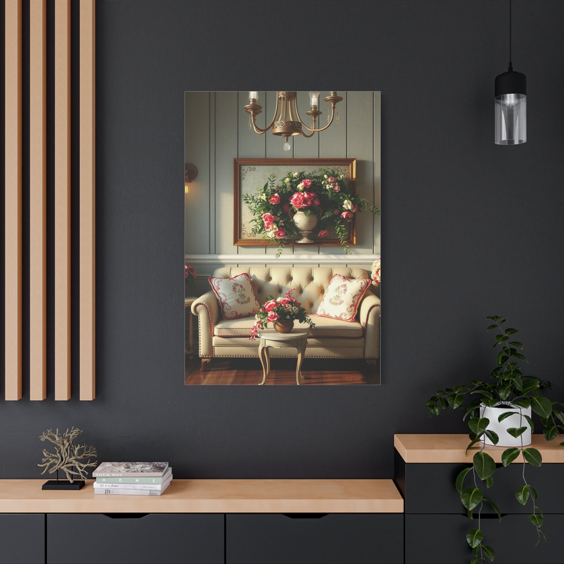 • Materials: cotton and polyester composite (canvas), pine wood (frame)